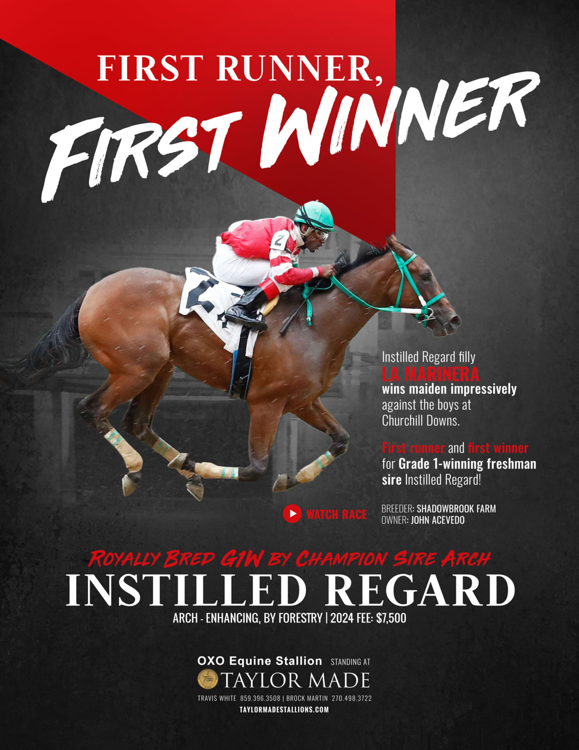 Not only a grade one winner and four-time graded stakes winner, Instilled Regard is a grade one performer on dirt and turf, and from two to five years. He is by the multiple champion siring Arch, out of a daughter of Champion Heavenly Prize from the great Phipps family stemming from Champion Lady Pitt.