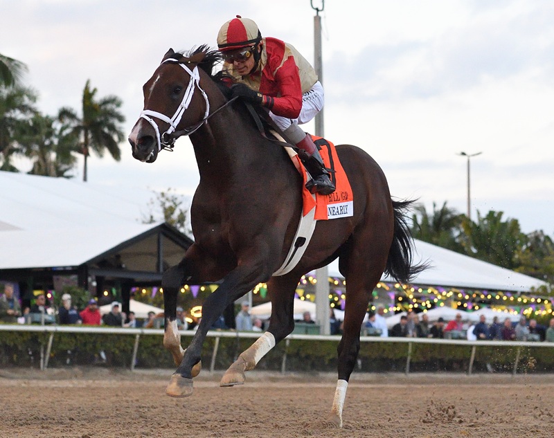 Nearly has won three of four starts and earned $249,900 for owner Centennial Farms, who procured the colt for $350,000 at the 2024 Keeneland September sale. Nearly was bred in Florida by Wind Hill Farm.