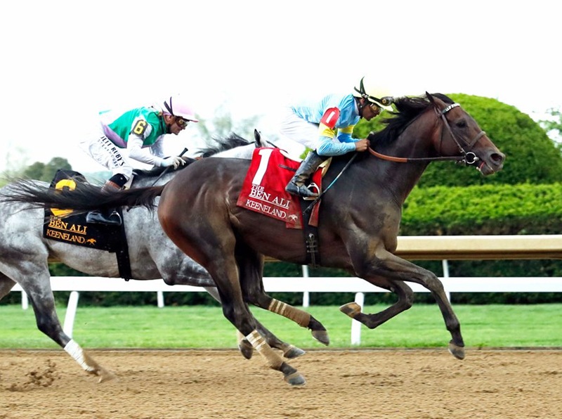 Stars and Stripes was making his graded stakes debut in the 1 3/16-mile Ben Ali. The bay colt raced in midpack for the better part of seven furlongs while racing in the two-path on the backstretch. After waiting for room on the final turn, he swung four-wide into the stretch and engaged Batten Down for the lead. In a spirited battle down the lane, Stars and Stripes began to edge clear in the final sixteenth to secure the win.